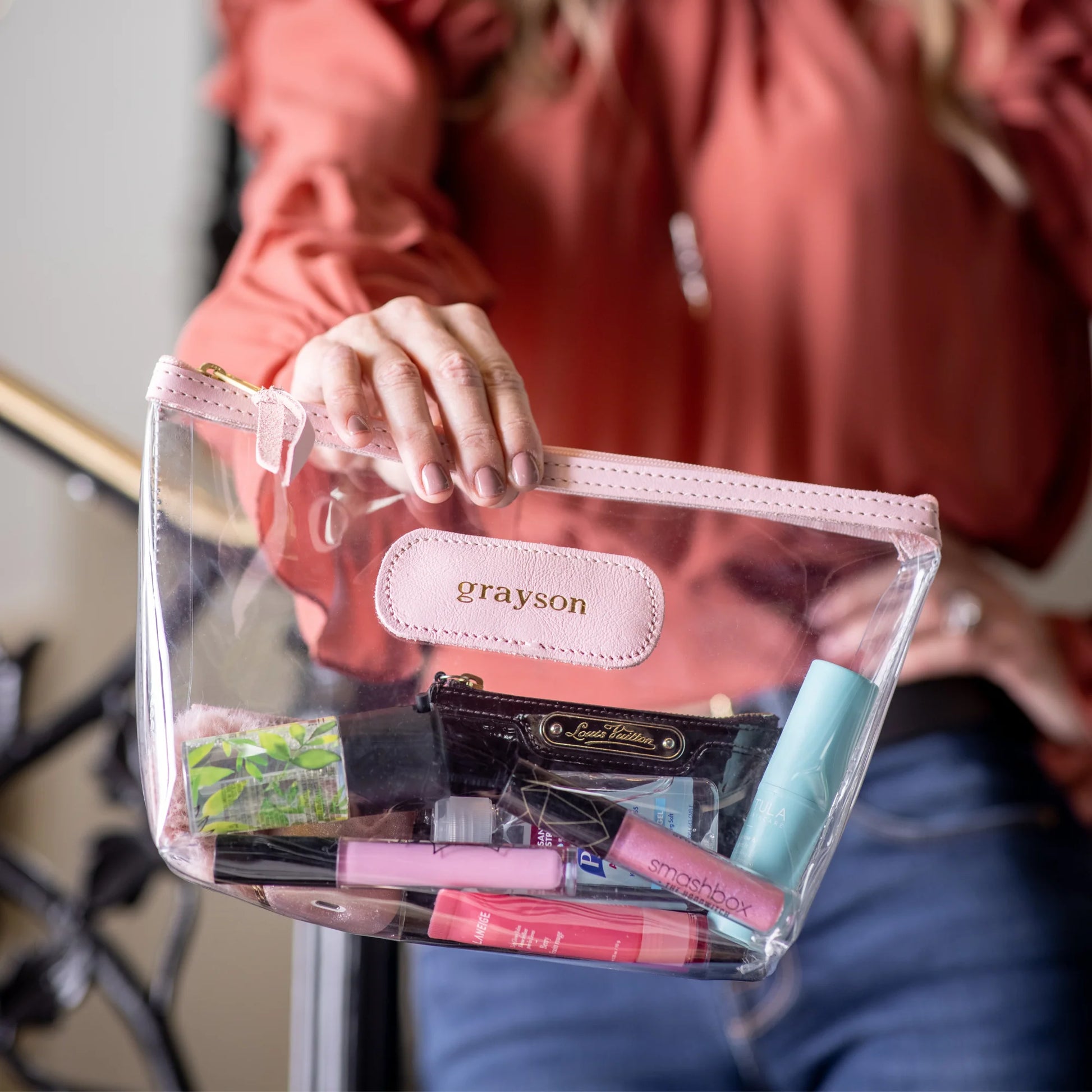 Having a hard time locating those small items in that black hole you call a purse? Well, struggle no more! Our Clear Grande in clear plastic is here to help easily identify your products, especially when you travel!